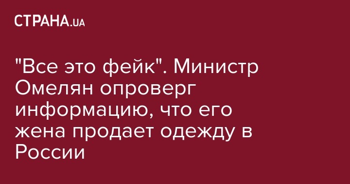 После того, как журналист Александр Дубинский обнародовал информацию о том, что дизайнер Светлана Бевза, жена министра инфраструктуры Владимира Омеляна поставляет свою продукцию в аннексированный Крым и Россию, сам министр назвал это фейком.