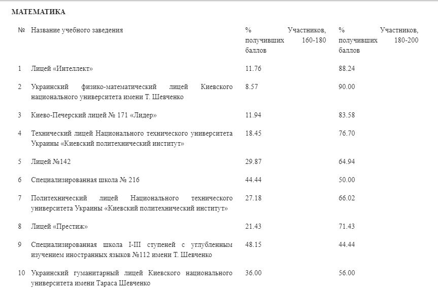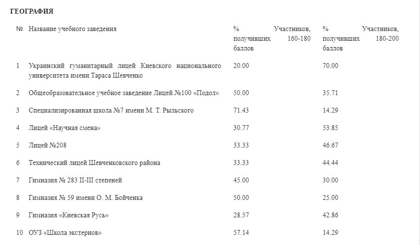 За основу были взяты результаты по самым сдаваемым предметам: украинскому языку и литературе, математике, истории, английскому языку и географии.