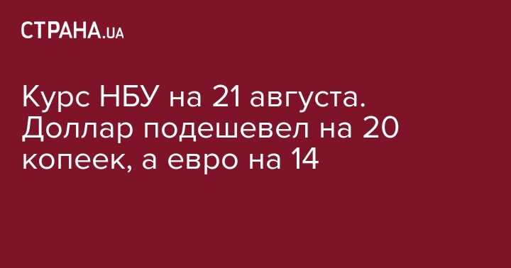 Национальный банк Украины (НБУ) установил официальный курс основных валют на вторник, 21 августа. При этом курс доллара отдалился от психологической отметки в 28 грн за доллар. Об этом сообщается на сайте регулятора.