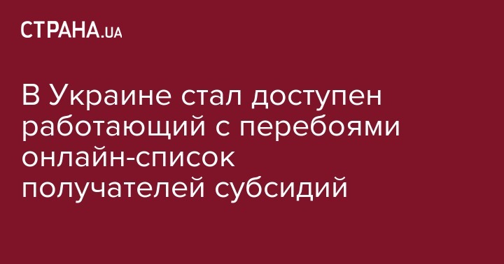 В Украине стал доступен работающий с перебоями онлайн-список получателей субсидий