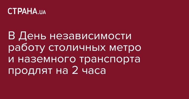 В пятницу, 24 августа, киевское метро и наземный транспорт будут работать на 2 часа дольше в связи с празднованием Дня независимости Украины. Об этом сообщает пресс-служба КГГА.