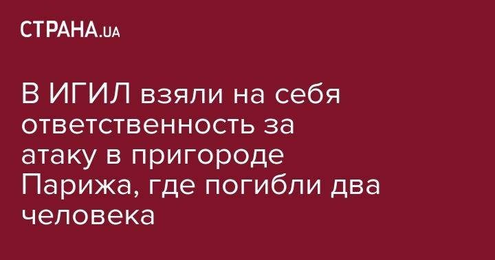 "Исламское государство взяло на себя ответственность за нападение с ножом вблизи Парижа", - говорится в сообщении.
