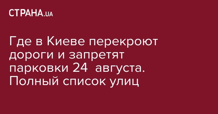 Где в Киеве перекроют дороги и запретят парковки 24 августа. Полный список улиц