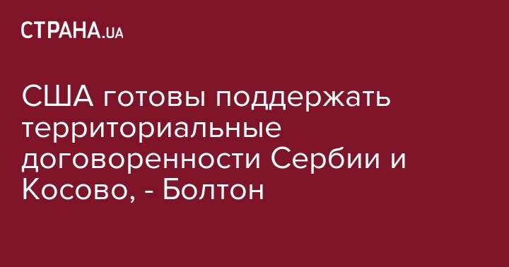 Советник президента США по национальной безопасности Джон Болтон заявил, что США будут готовы поддержать территориальные договоренности между Сербией и Косово, если таковые удастся достичь.