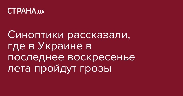 В последнее воскресенье августа погоду в Украине будет определять сухая воздушная масса и только в западных регионах Украины синоптики прогнозируют дожди с грозами. Об этом сообщает Укргидрометцентр.