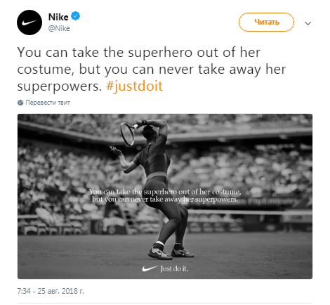 В компании Nike ответили лаконичнее: "Можно забрать у супергероини костюм, но вы никогда не сможете лишить ее суперсил".