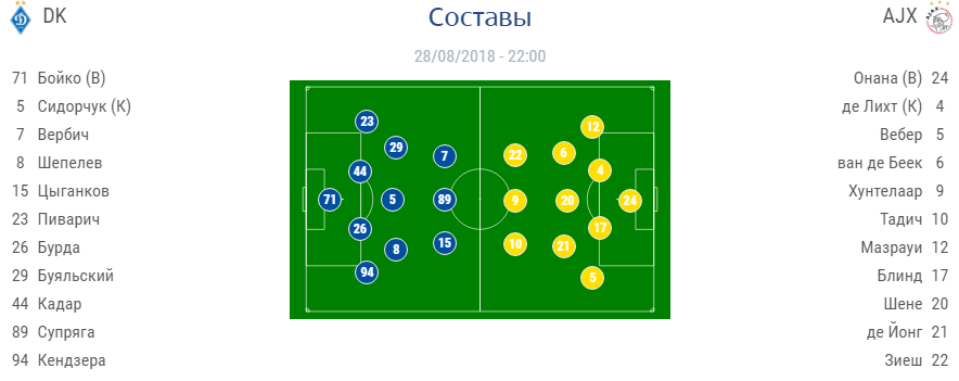 20:55 Главный тренер "Динамо Александр Хацкевич перед игрой пообещал новую тактику против голландцев. Он не исключил, что уже с первых минут понадобится прессинг и агрессия. При этом нужно держать оборону, поскольку у "Аякса" очень активная атака. При этом экс-тренер сборной Украины Йожеф Сабо также заявил, что "Динамо" следует прессинговать на поле: не давать преимущества во владении мячом, действовать на опережение. А игра от обороны, по его мнению, не даст требуемого результата.