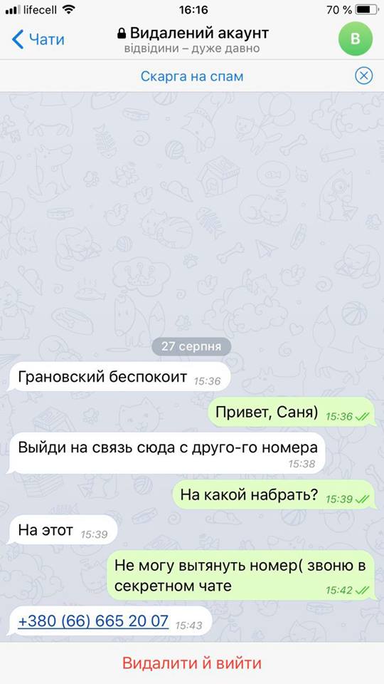 Депутат Александр Грановский (БПП) написал в Facebook о факте  вымогательства денег от его имени. Он также разместил сканы переписок с мошенниками. В одно случае речь идет, вероятно, 45 тысячах долларов.