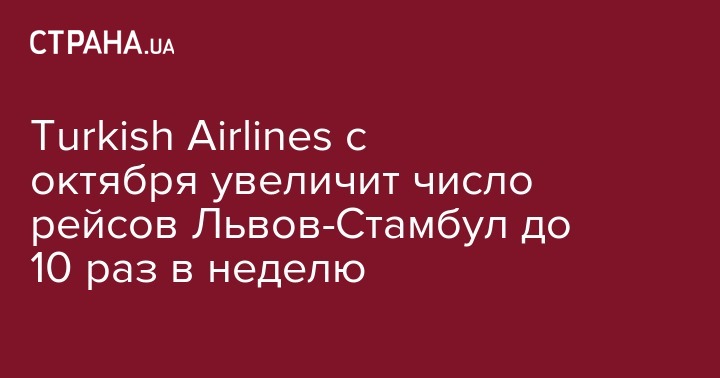 Авиакомпания Turkish Airlines планирует увеличить частоту рейсов Львов-Стамбул, которые были возобновлены два года назад, с 7 до 10 рейсов в неделю с 28 октября. Об этом сообщает Avianews.