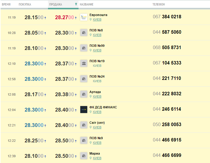 А всего через три часа в обменном пункте по улице Владимирской доллар можно продать за 28,15 грн, покупка обойдется в 28,45 грн.