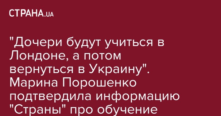 "Дочери будут учиться в Лондоне, а потом вернуться в Украину". Марина Порошенко подтвердила информацию "Страны" про обучение детей за рубежом