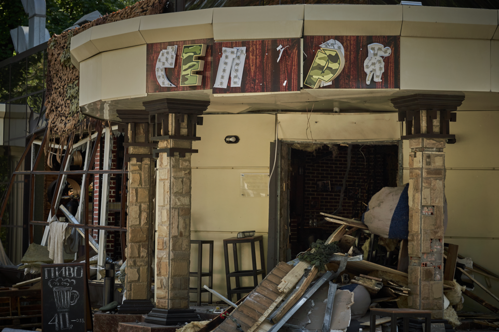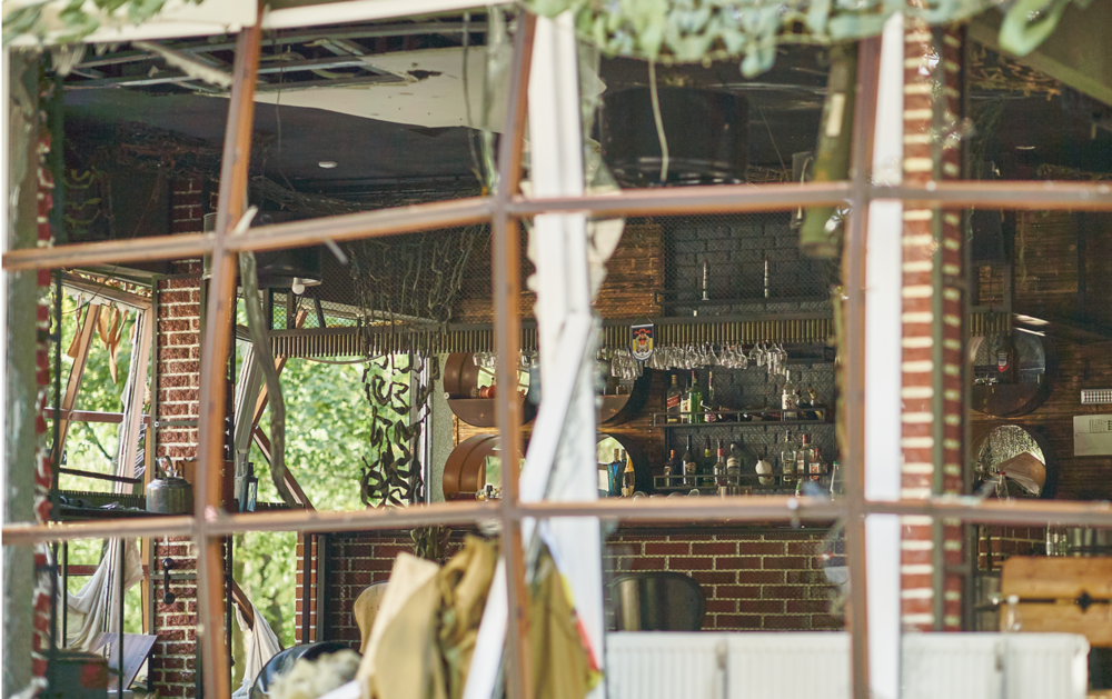Входа в кафе, как такового не существует. Мощным взрывом его просто вынесло.