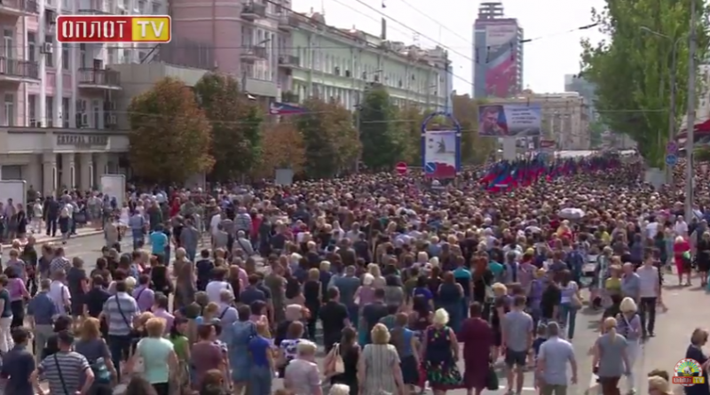 Двухсоттысячная колонна людей, следовавших за гробом, прошла от столичного театра оперы и балета до здания администрации главы т.н. "ДНР" на улице Артема.