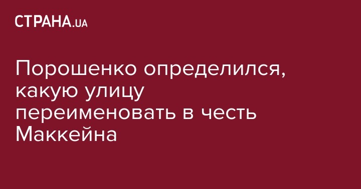 Президент Украины Петр Порошенко предлагает Киевскому городскому совету переименовать столичную улицу Ивана Кудри (Печерский район) в честь сенатора США Джона Маккейна. Об этом сообщила представитель президента в парламенте Ирина Луценко, сообщает Интерфакс.