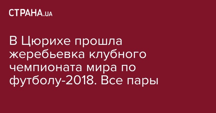 Во вторник, 4 сентября, в Цюрихе прошла жеребьевка клубного чемпионата мира - 2018. Турнир в этом году пройдет в ОАЭ с 12 по 22 декабря.