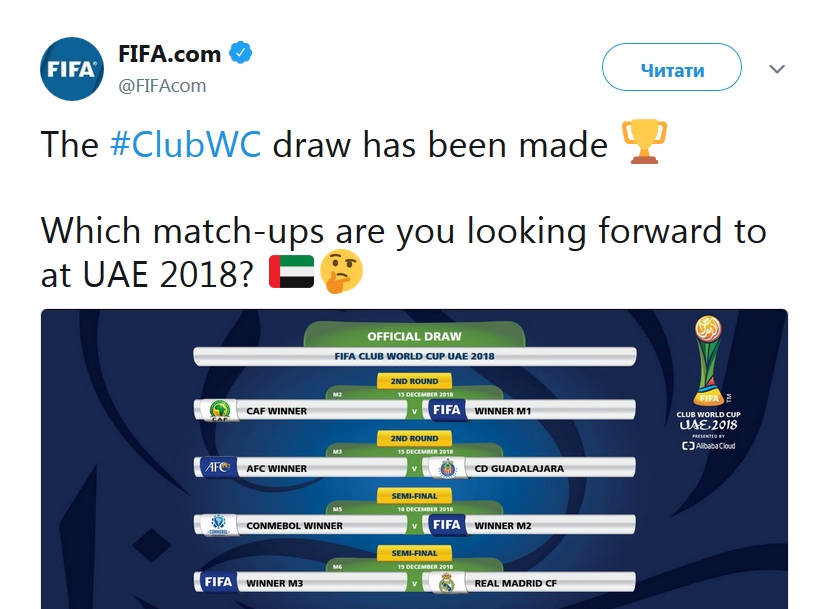 Расписание матчей клубного чемпионата мира-2018: