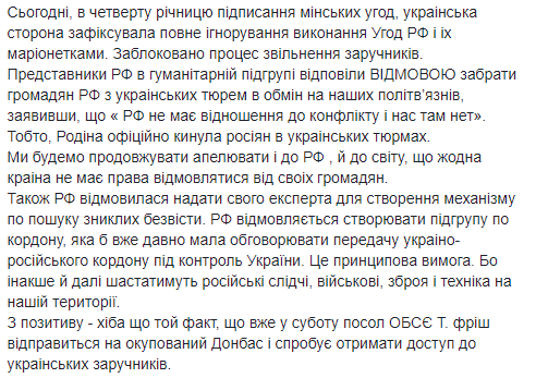"Россияне категорически отказались предоставить ОБСЕ и Украине какую-либо информацию об этих своих следственных группах. Также в отчетах СММ ОБСЕ зафиксировано, что россияне также отказались показать тела взорванных боевиков и не допустили в больницы, где содержатся раненные. Это еще раз свидетельствует о российском следе зачистки подельников", - написала она.