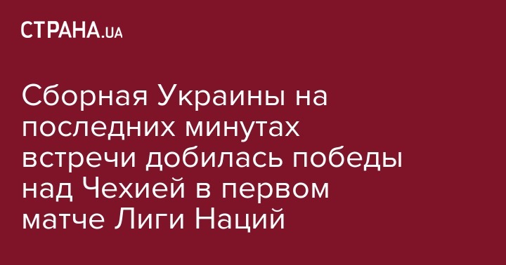 Сборная Украины на последних минутах встречи добилась победы над Чехией в первом матче Лиги Наций