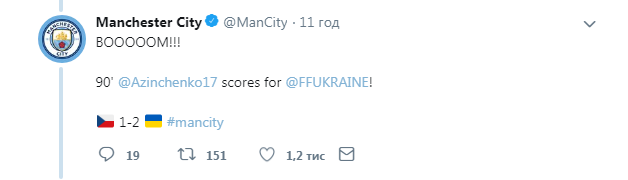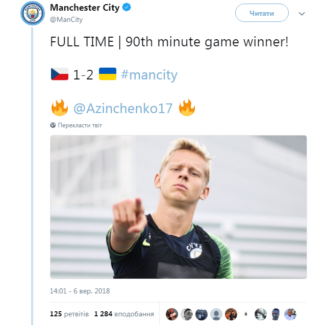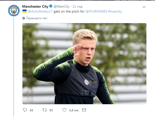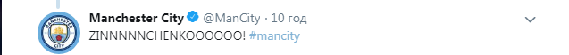 "Манчестер Сити" написал кратко, зато очень эмоционально: "Зиииинчееееенкоооо".