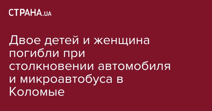 В г.Коломыя (Ивано-Франковская обл.) на ул.Объездная дорога произошло ДТП при участии легкового автомобиля и микроавтобуса, в результате чего погибли двое детей в возрасте 5-6 лет и получили травмы девять человек.