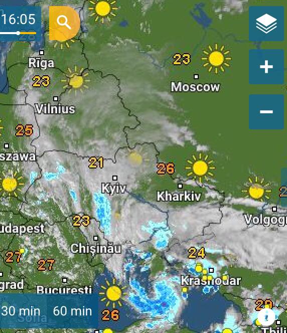 "Каверзный крымский циклон таки забросил свои фронты с дождями до Киева.