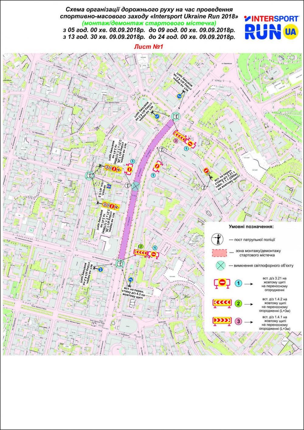 В воскресенье, 9 сентября, в Киеве из-за забега "Intersport Ukraine Run 2018" перекроют часть улиц. Об этом в Facebook сообщает Центр организации дорожного движения столицы.