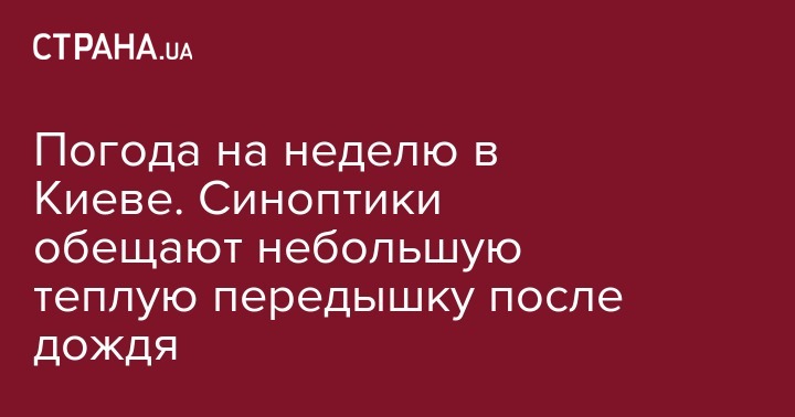 По данным Sinoptik.ua, дожди на этой неделе в Киеве будут идти 10 и 11 сентября. Затем в столице установится переменная облачность без осадков, хотя в субботу, возможна гроза. Самым холодный день недели понедельник. когда воздух не прогреется больше +19. Затем потеплеет до +24...+26. С воскресенья днем будет +22.
