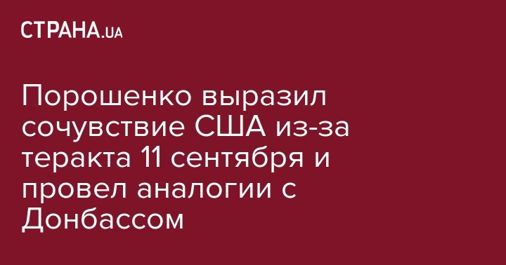 "Сегодня день памяти жертв серии террористических атак в Соединенных Штатах 11 сентября 2001 года. Вместе с дружественным американским народом склоняем голову перед памятью невинно убитых в страшной трагедии. Горе, которое она принесла в тысячи семей, до сих пор отзывается болью в сердцах по всему миру", – заявил Порошенко.