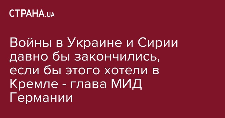 Войны в Украине и Сирии давно бы закончились, если бы этого хотели в Кремле - глава МИД Германии