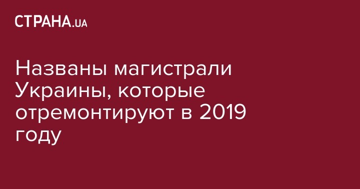 "В 2019 году планируем провести ремонт на таких магистралях М-03 (Киев - Должанское), М-04 (Знаменка - Луганск), М-05, начинаем масштабный ремонт трассы Киев - Одесса, М-09 (Львов - Рава Русская), М-12 (Стрый - Знаменка), М-14 (Одесса - Новоазовск), М-19 (Доманово - Порубное) и М-21 (Выступовичи - Могилев-Подольский). А также Н-01, Н -03, Н-08, Н-11, Н-14 (в Николаевской области), Н-26", - перечислил глава Укравтодора.