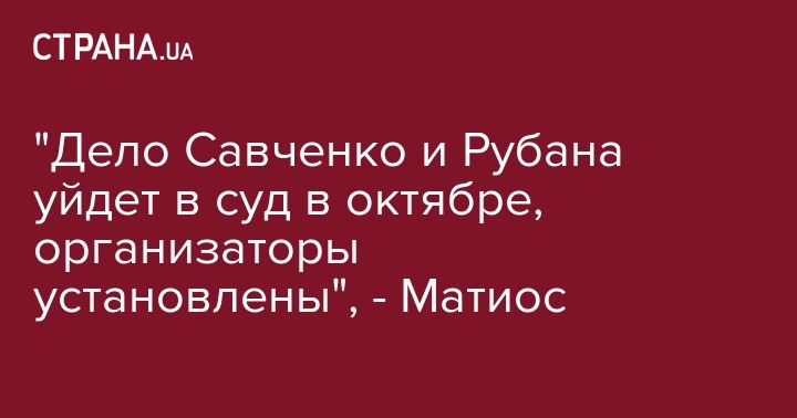 "Следствие закончено, материалы дела переданы адвокатам, как господина Рубана, так и госпожи Савченко... Адвокаты знакомятся, они это пытаются делать не очень быстро, но знакомятся... Только подпишут, и дело будет передано в суд. Надеюсь, что до конца сентября они ознакомятся с материалами. В октябре мы предполагаем, если не будет затягивать защита, мы передадим обвинительный акт в суд", - сказал Матиос.