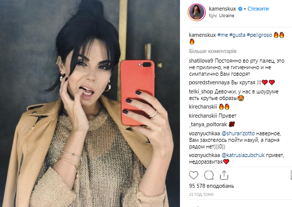 Судя по всему, снимки сделаны в одном из киевских ресторанов. На них Настя Каменских в коротком платье выглядит изрядно похудевшей и даже, по мнению комментаторов на ее странице, болезненной и грустной и даже похожей на Майкла Джексона.