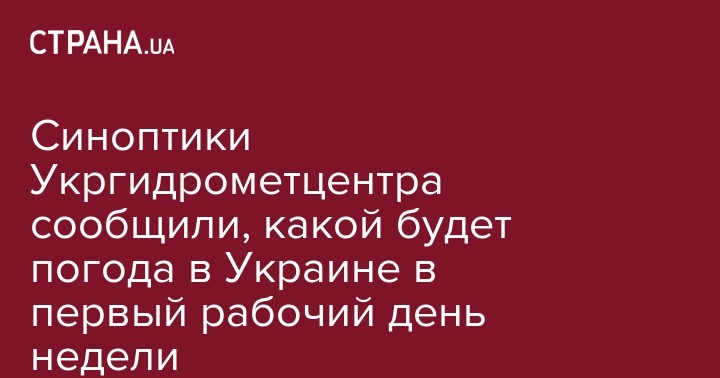 Синоптики Укргидрометцентра сообщили, какой будет погода в Украине в первый рабочий день недели