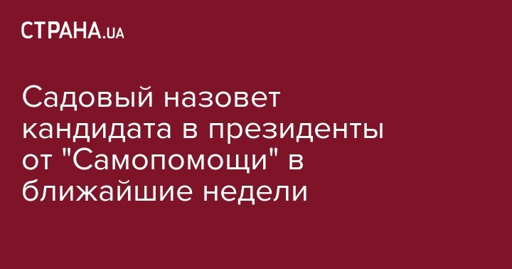 Партия "Объединение "Самопомощь" назовет своего кандидата в президенты в течение следующих двух недель. Об этом сказал лидер политсилы Андрей Садовый в интервью "Украинской правде"
