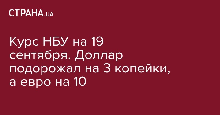 Курс НБУ на 19 сентября. Доллар подорожал на 3 копейки, а евро на 10