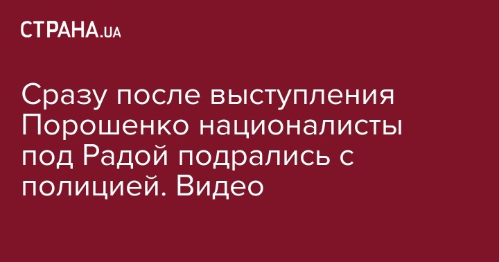Сразу после выступления Порошенко националисты под Радой подрались с полицией. Видео