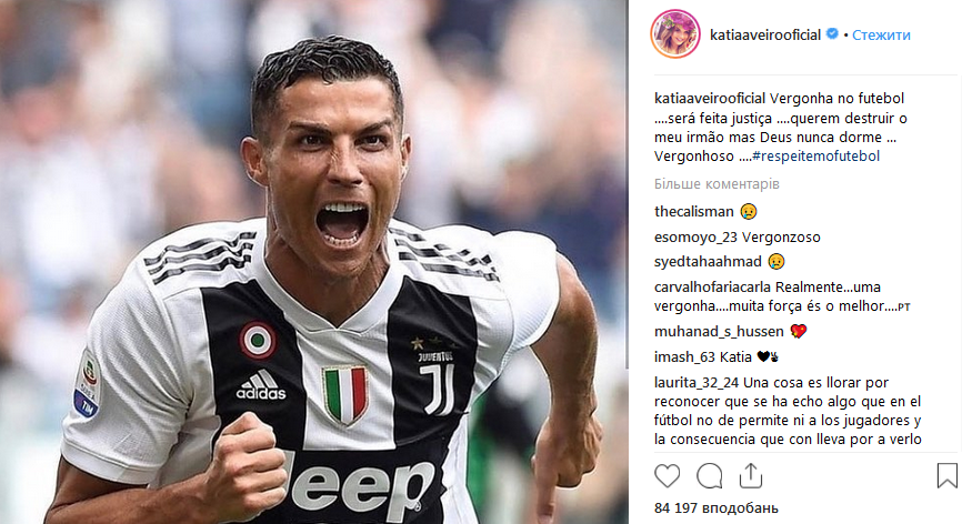 Сестра футболиста Катя Авейру, в своем Instagram заступилась за брата.
