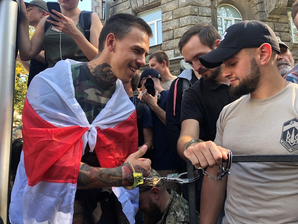 После "штурма" ВР националисты приковали себя наручниками к забору на Банковой