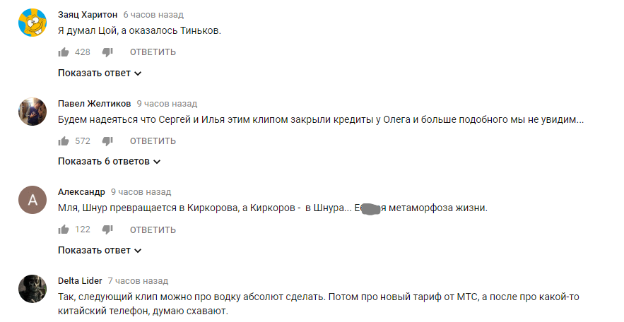 В клипе несколько раз отчетливо демонстрируется несколько брендов - шампанского и российского банка. Многим пользователям такая явная реклама не понравилась, они стали писать, что это уже уровень Филиппа Киркорова, вспоминая его клип с Николаем Басковым "Ибица", где щедро мелькают разные марки. "Шнур превращается в Киркорова, а Киркорова в Шнура", - отмечают зрители в комментариях к клипу.