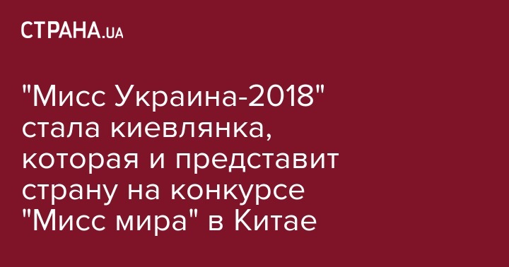 "Мисс Украина-2018" стала киевлянка, которая и представит страну на конкурсе "Мисс мира" в Китае