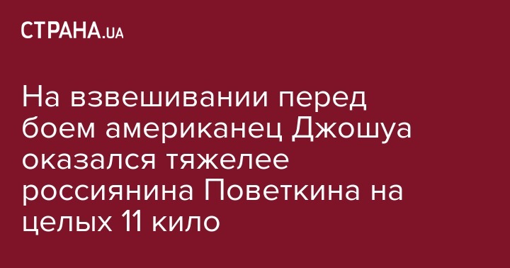 Оказалось, что Поветкин весит всего 100,7 кг, тогда как Джошуа - 111,8 кг. В сумме британец перевесил россиянина на 11 килограммов.