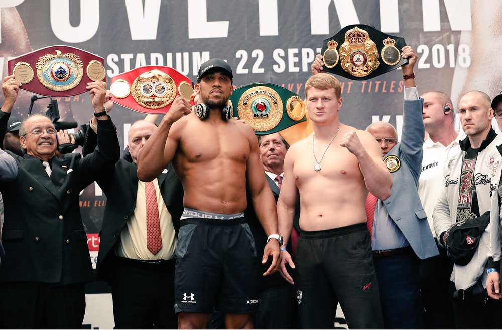 В Лондоне прошла процедура взвешивания перед поединком британского и российского супертяжеловесов Энтони Джошуа и Александра Поветкина. Об этом сообщает Prosportua.