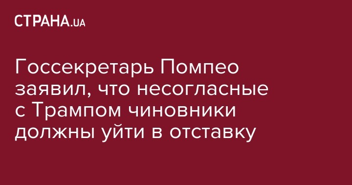 Госсекретарь Помпео заявил, что несогласные с Трампом чиновники должны уйти в отставку