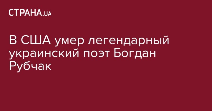 Отметим, что последние годы он жил в Нью-Джерси с женой. Ушел из жизни поэт, находясь на больничной койке. Богдану Рубчаку было 84 года.