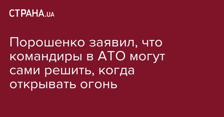 Порошенко подчеркнул, что в случае непосредственной угрозы жизни украинских военных они имеют право открывать огонь. "Право разрешать огонь принадлежит непосредственно командиру. Он без каких-либо согласований может самостоятельно принять решение ... Если создается непосредственная угроза жизни, он обязан это сделать", - отметил глава государства.