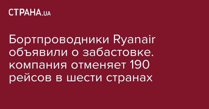 Бортпроводники Ryanair объявили о забастовке. компания отменяет 190 рейсов в шести странах