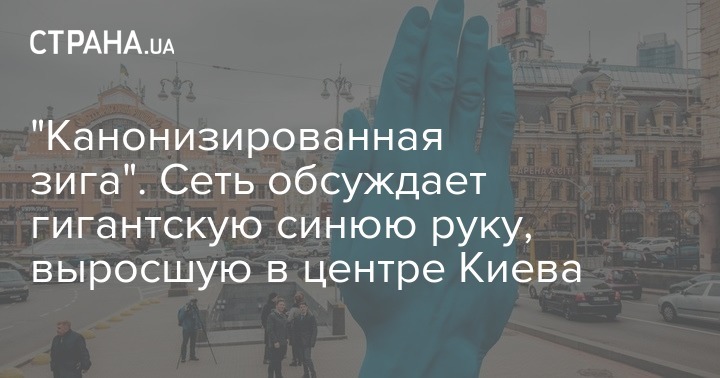 "В Киеве поставили памятник синей руке. По задумке авторов символизирует працелюбнiсть та незакомпл... дружбу и общение. Ну вообще да, синие люди они такие.