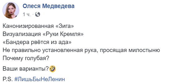 Вместо памятника Ленину в центре Киева установили...руку. Кто-то называет ее "рукой Кремля", но я бы этот архитектурный сюр называл бы "на х*й - это туда!", - иронизирует блогер Денис Гороховский.