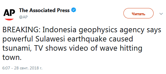 Также мы сообщали, как в августе землетрясение в Индонезии унесло жизни почти 40 человек и стало причиной цунами.