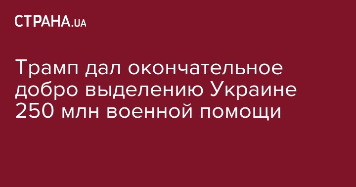 Трамп дал окончательное добро выделению Украине 250 млн военной помощи